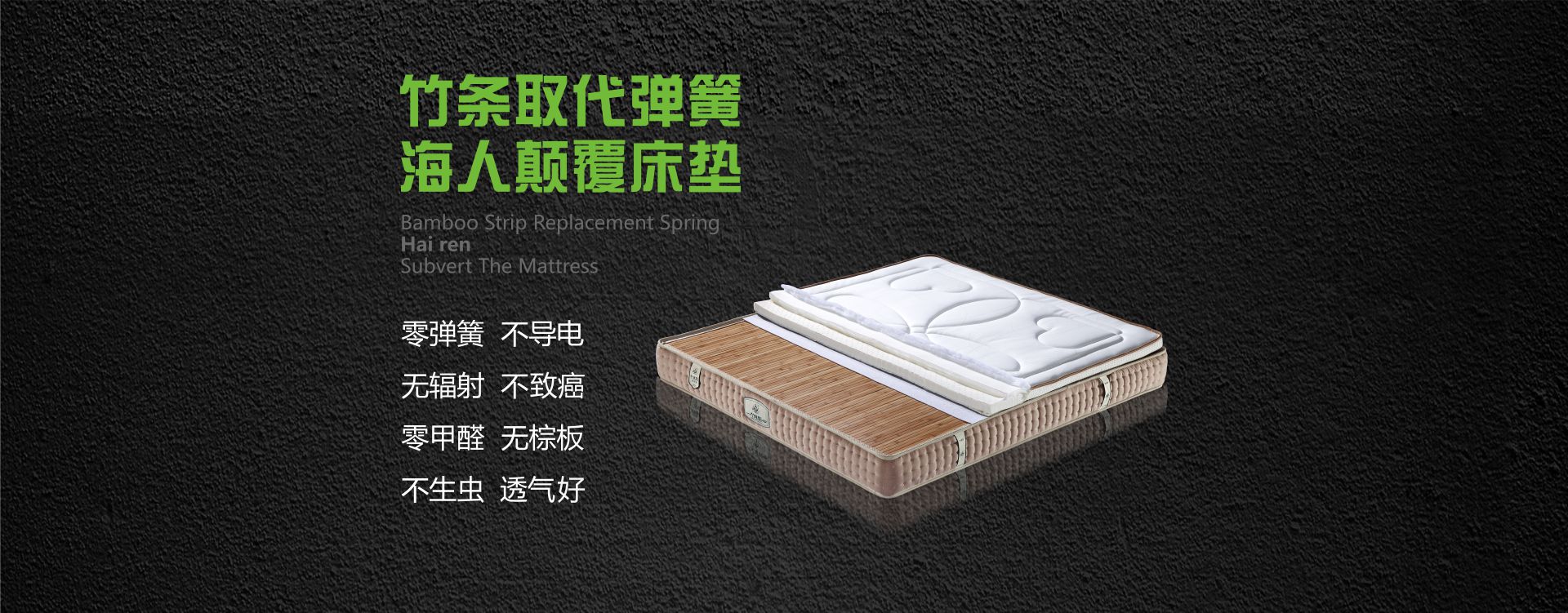 海人竹芯床墊,改變了140多年來世界床墊基本用鋼絲彈簧做內膽的結構工藝,床墊底部為竹條排骨架,克服了彈簧生銹變形的缺陷,解決了棕板容易生蟲的世界難題,是一種取代彈簧床墊棕床墊的新型床墊。。因其獨具無簧有彈性、環保的特色和折疊、拆裝等上樓方便,運輸費用低的優點。